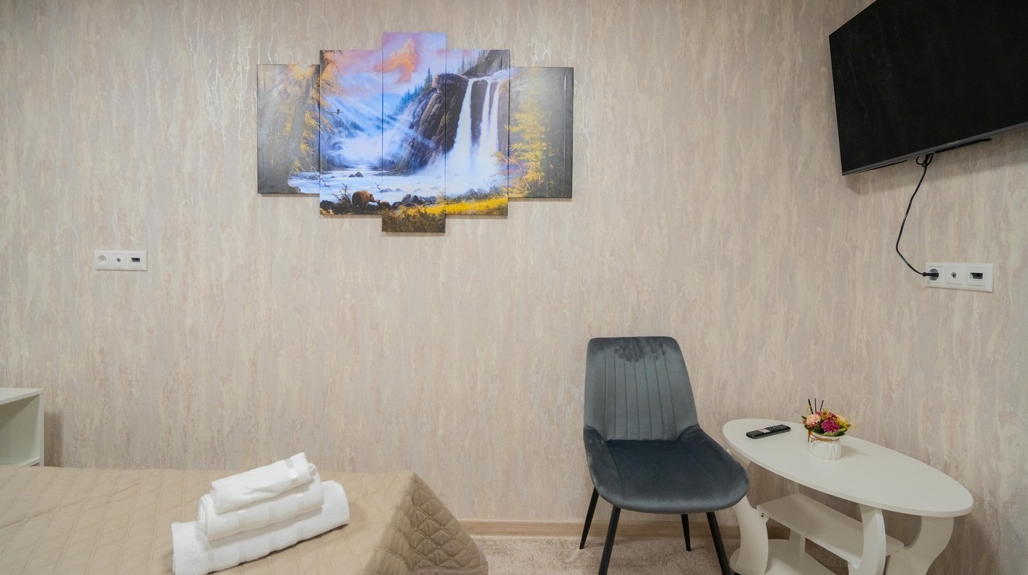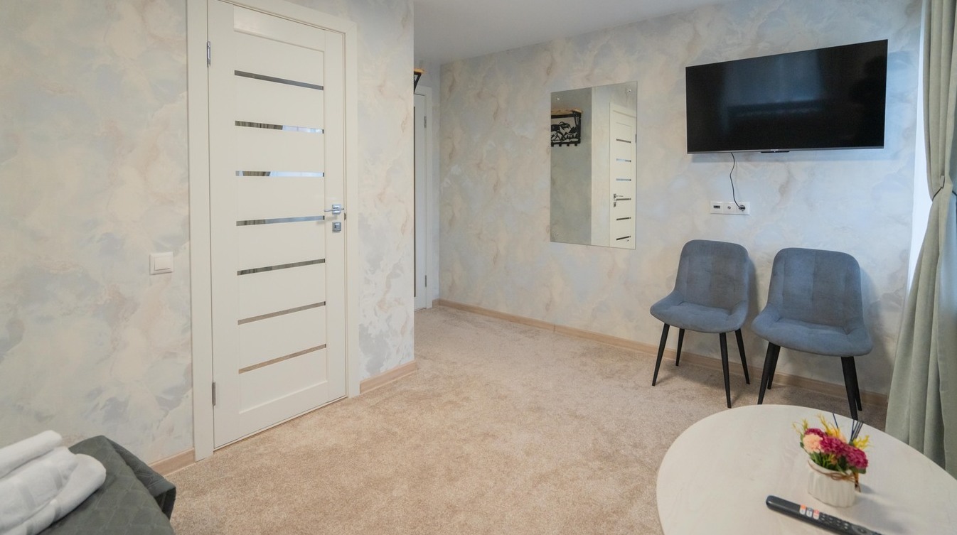 Однокомнатный номер включает гостиную-спальню и ванную комнату.